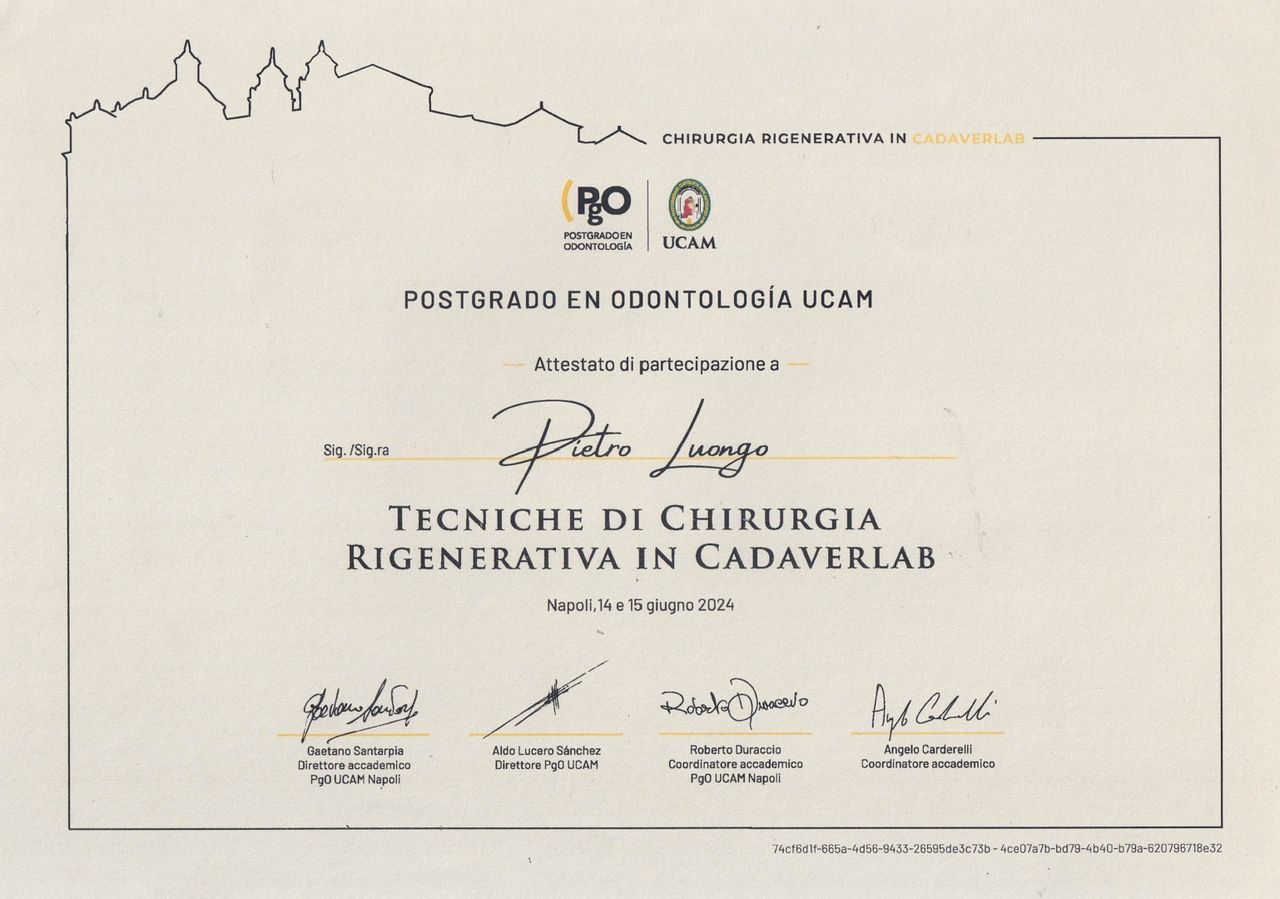 Mi sono laureato in Odontoiatria e Protesi Dentaria presso la Seconda Università degli Studi di Napoli, oggi Università degli Studi della Campania “Luigi Vanvitelli”, dove ho conseguito anche il Master in Implantologia Dentaria.