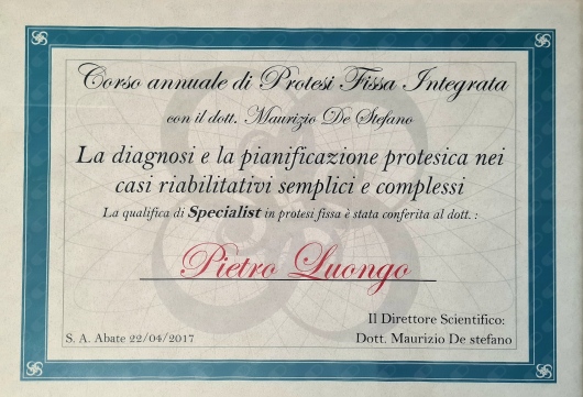 Sono Pietro Luongo, odontoiatra, e svolgo la mia attività professionale a Napoli presso lo studio odontoiatrico di famiglia, attivo da oltre trent’anni.