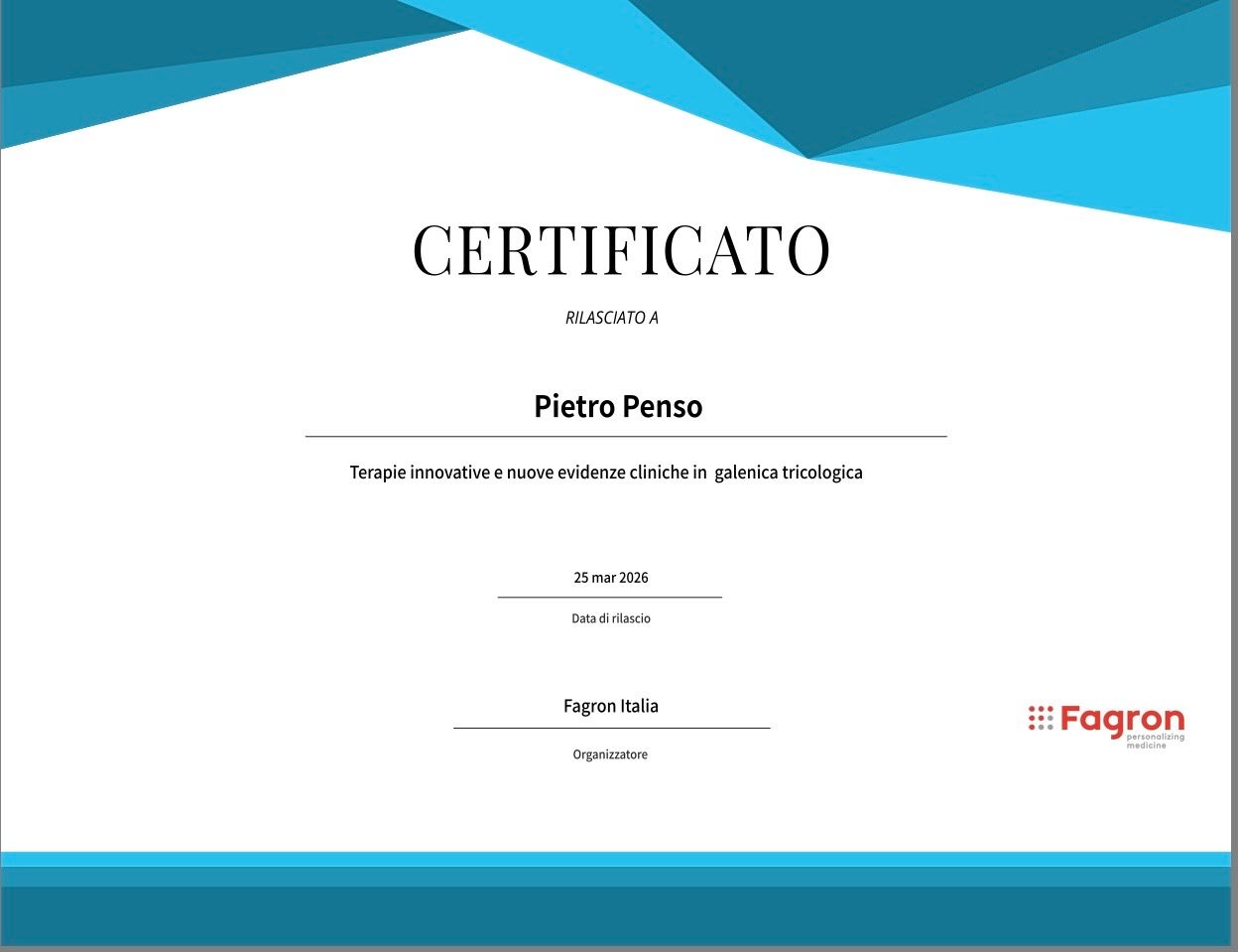 Mi sono laureato in Medicina e Chirurgia con il massimo dei voti e lode presso l’Università degli Studi di Padova, dove ha successivamente conseguito la Specializzazione in Dermatologia e Venereologia, anch’essa con il massimo dei voti e lode.