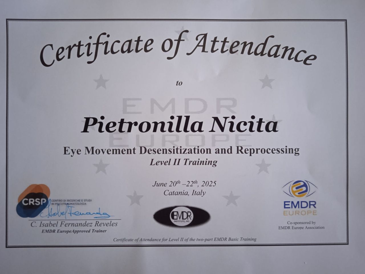 Mi ha accompagnata in questo mio incredibile viaggio nel passato, permettendomi di capire ogni emozione, ogni scelta e sensazione! Mi ha aiutata a ritrovare serenità nonostante io stessi mettendo tutto in discussione. Sono ancora in cammino, ma sapere di avere un sopporto costante cambia tutto. Consiglio vivamente. Grazie di cuore.• Taormina Medical Center • elaborazione dei traumi •