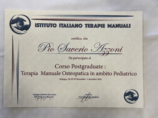 Sono Pio Saverio Azzoni. Dopo essermi Laureato in Scienze delle Attività Motorie e Sportive presso l'Università di Parma e dopo aver lavorato in numerosi centri sportivi e riabilitativi, decido dapprima di specializzarmi in Massoterapia, conseguendo il Diploma di Massaggiatore e Capo Bagnino degli Stabilimenti Idroterapici (Arte Ausiliaria delle Professioni Sanitarie) per poi intraprendere in seguito un percorso quinquennale in Osteopatia presso l'Osteopatia IITM School di Faenza.