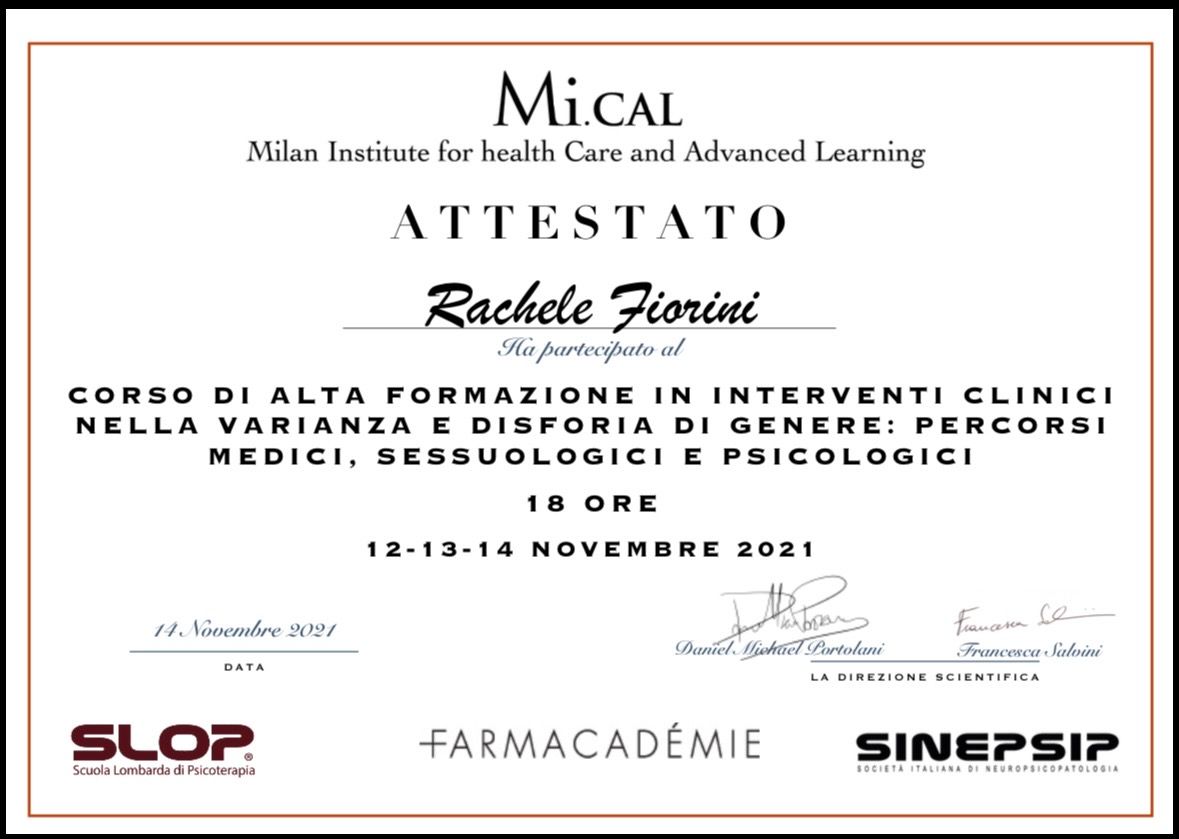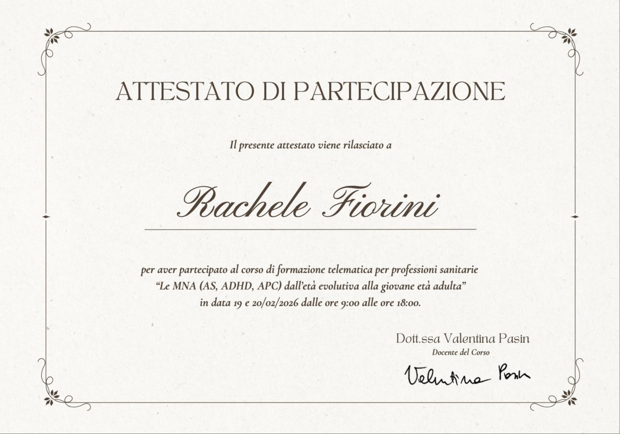 Oltre ai miglioramenti pratici, mi sono sentito davvero ascoltato e accolto, senza giudizio. Consiglio la Dott.ssa Fiorini Rachele a chi soffre di disturbi fisici legati allo stress o all’ansia e cerca una professionista competente, attenta e schietta.