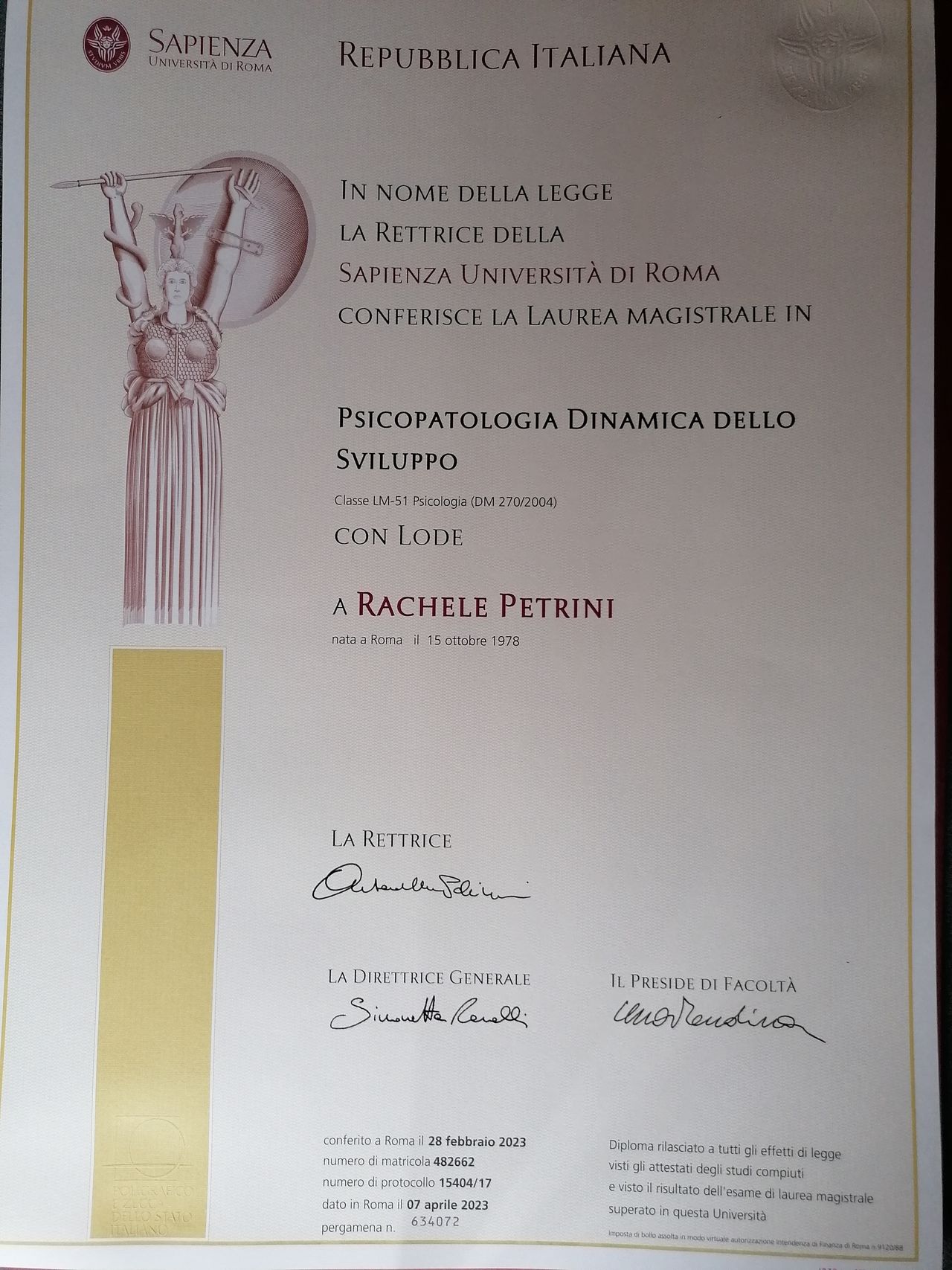Ho iniziato un percorso con la dottoressa Petrini in un momento della mia vita piuttosto buio, quando sentivo che le vicende del mio passato mi facevano ancora soffrire. All'inizio ero spaventata e titubante, però grazie all'empatia e alla grande capacità di comprensione della dottoressa, sono riuscita ad affrontare momenti dolorosi e venirne a capo. Per questo la ringrazio molto e sono proprio contenta di aver iniziato questo percorso.