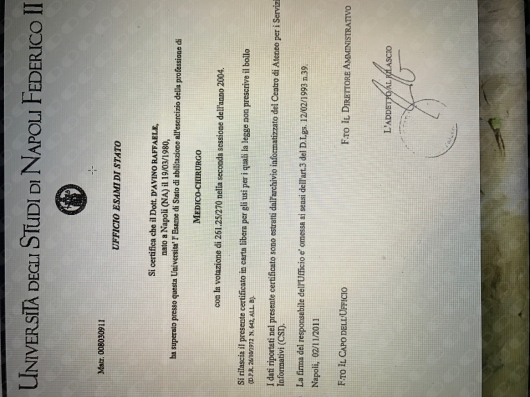dal 11/2008 al 08/2009: Periodo di Formazione Specialistica presso Ospedale Rilievo Nazionale G. Moscati, DEA di secondo livello Chirurgia D’Urgenza, Avellino