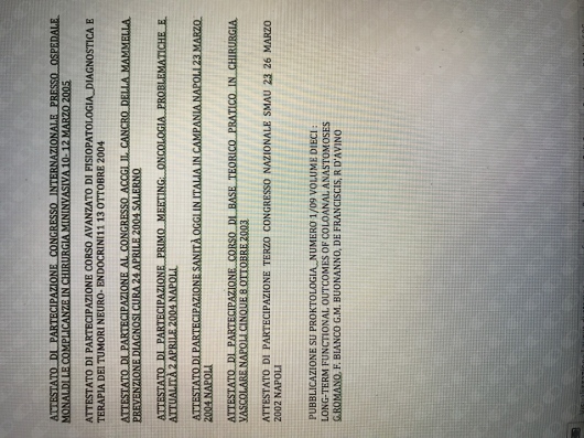 dal 09/2009 al 01/2011: Periodo di Formazione specialistica presso Istituto Nazionale dei Tumori Fondazione Pascale, Dipartimento Chirurgia Colo-Rettale Napoli