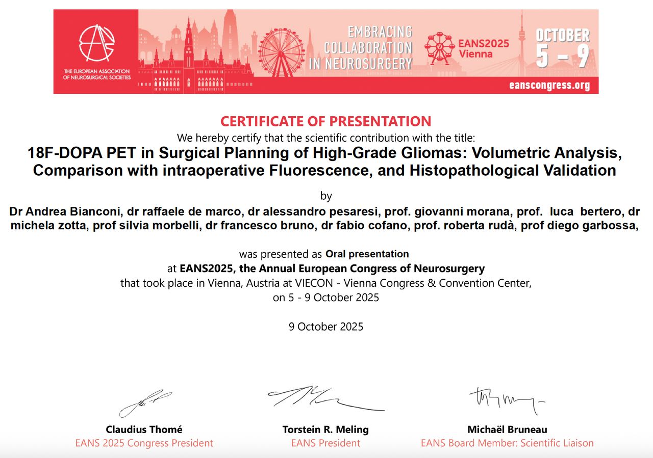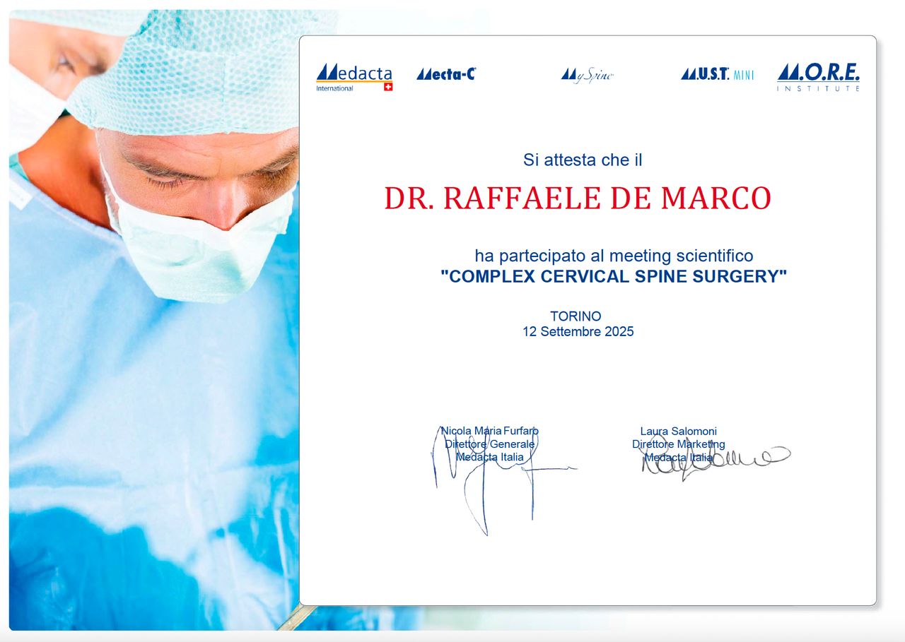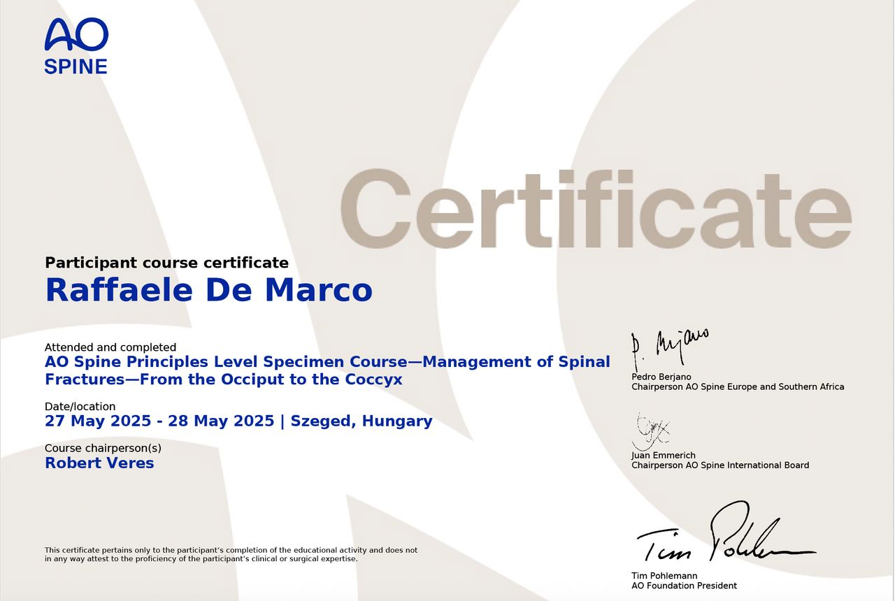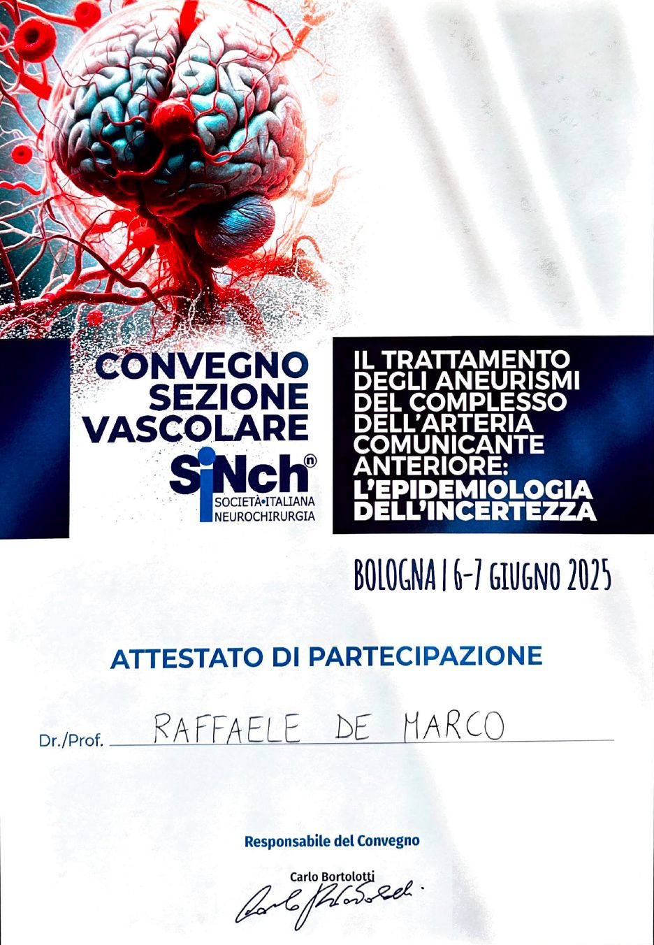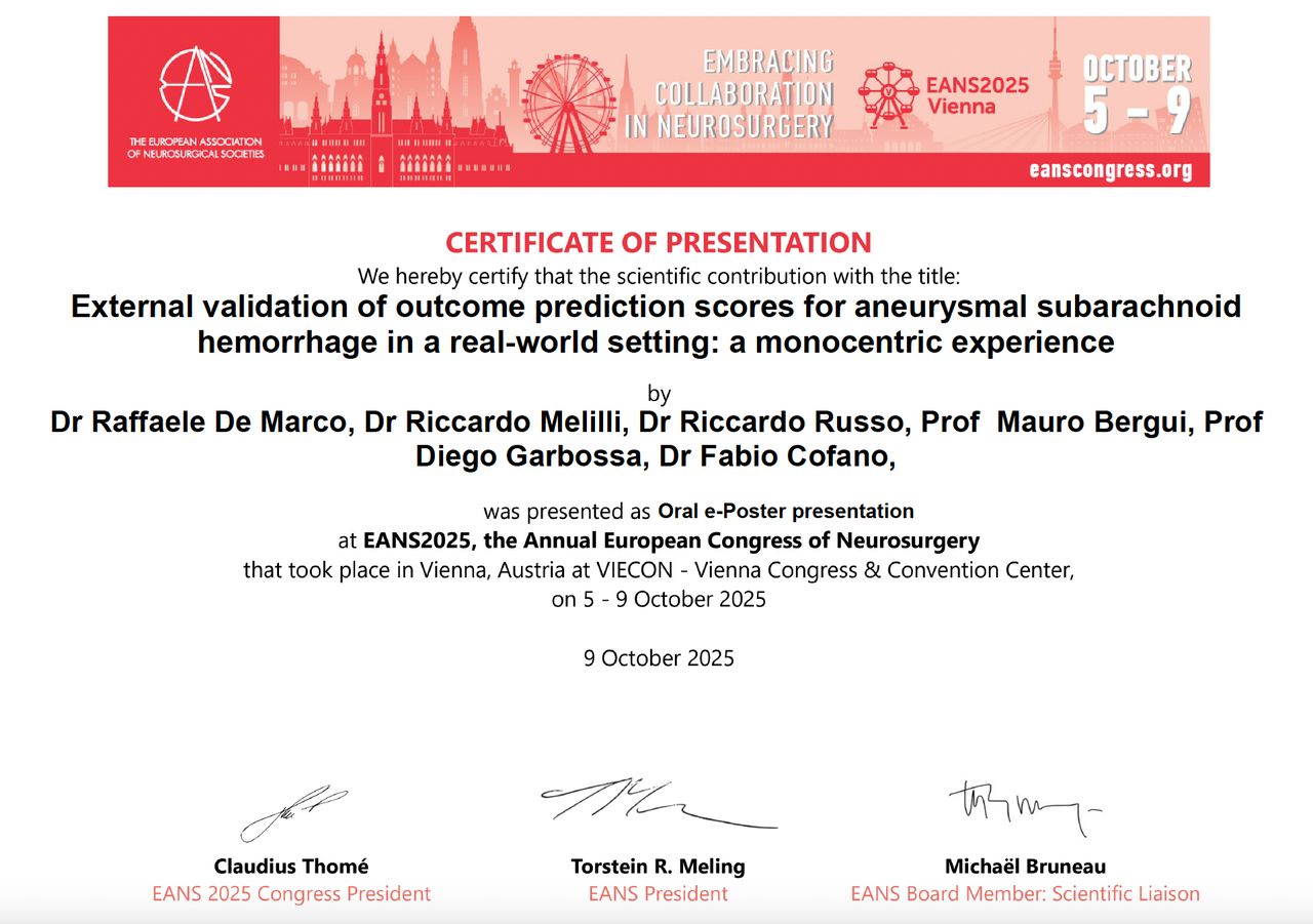 Mi specializzo in Neurochirurgia a Novembre 2024 con il massimo dei voti 70/70 e lode, menzione e dignità di stampa con una tesi sugli Schwannomi Vestibolari.