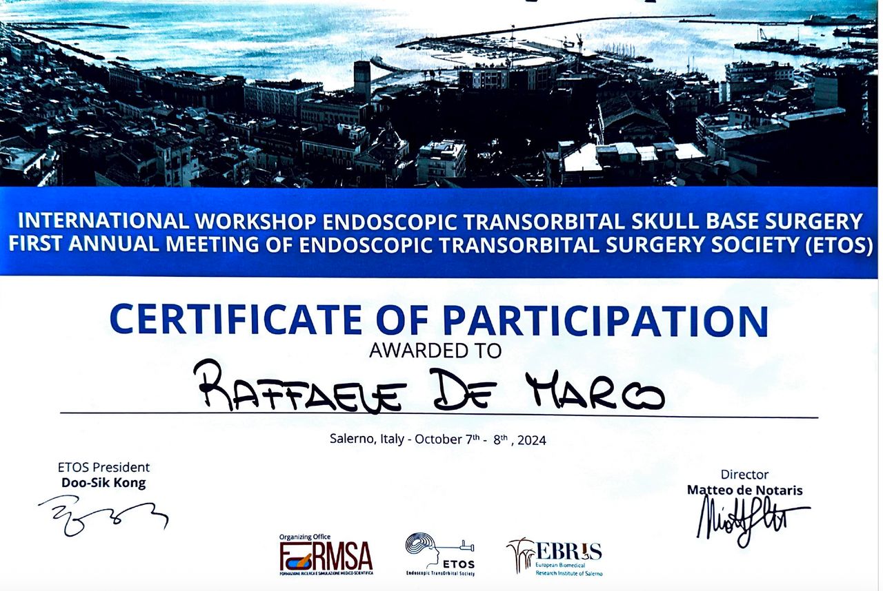 Ho appreso e perfezionato l'utilizzo dell'endoscopio per varie patologie del basicranio sotto l'esperta guida del Dr. Francesco Zenga (responsabile dell'Unità Semplice di Chirurgia Ipofisaria e del Basicranio).