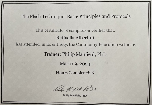 Nel marzo 2024 conseguo la certificazione Internazionale in Flash Technique liv.1