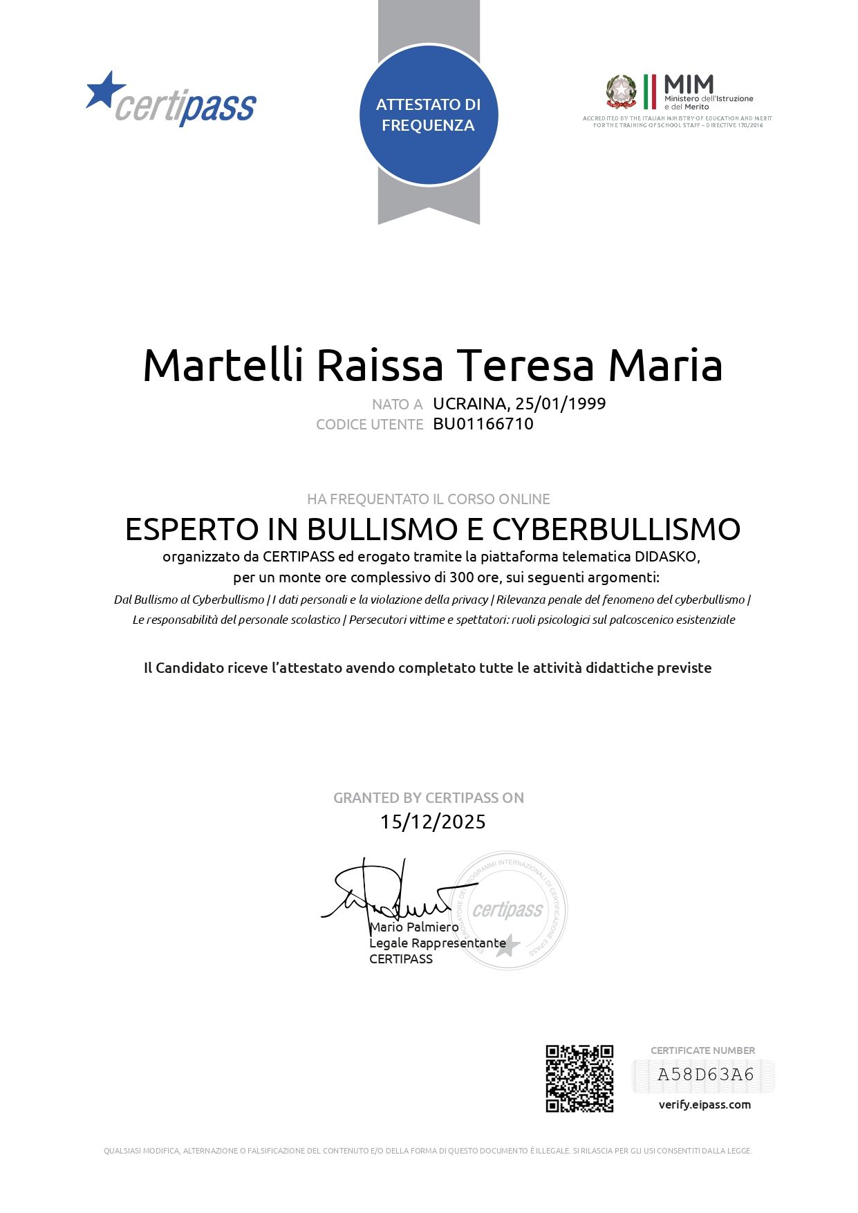 Ho svolto i miei studi presso l'Università degli studi di Messina e attualmente frequento il secondo anno della scuola di specializzazione con approccio sistemico relazionale.