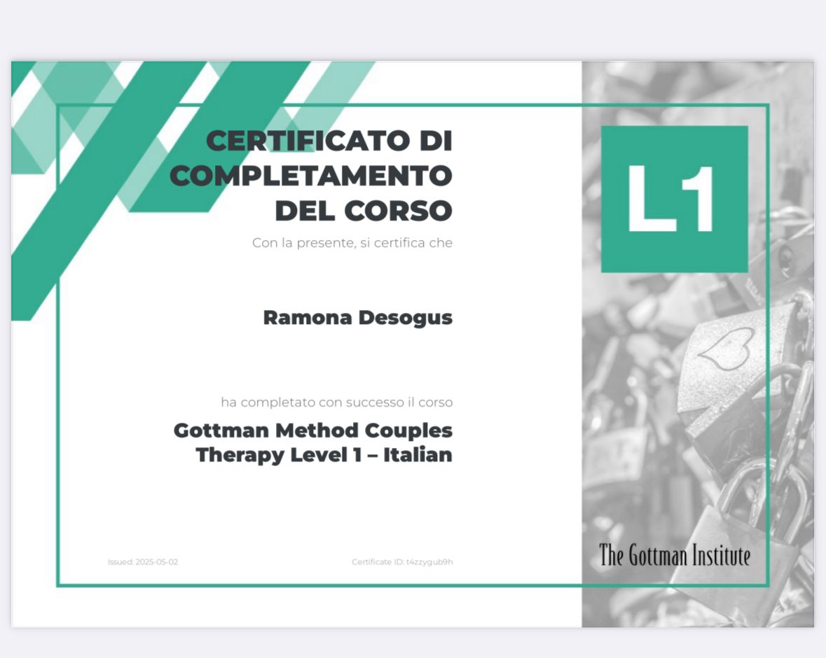 Psicoterapeuta Cognitivo Comportamentale (Psicoterapia Cognitiva e Ricerca, Milano).