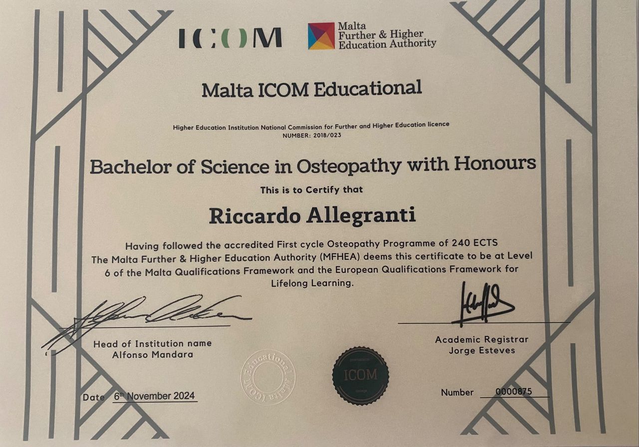 Benvenuto/a sul profilo di Riccardo Allegranti Osteopata, dove l’obiettivo è ascoltare ogni paziente, capire la sua storia e costruire insieme un percorso di guarigione che restituisca non solo l'assenza di dolore, ma un benessere duraturo.