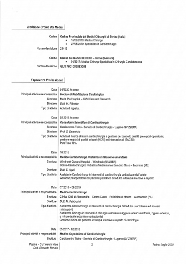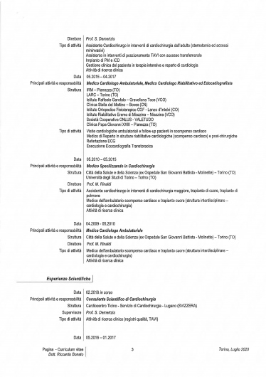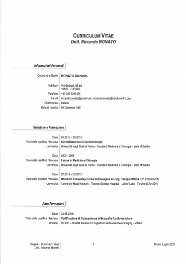 Si è laureato in Medicina e Chirurgia nel 2008 presso l'Università degli Studi di Torino e successivamente, nel 2015, specializzato in Cardiochirurgia presso il medesimo ateneo. Nel 2019 ha ottenuto la Certificazione di competenza in Ecografia Cardiovascolare da parte della SIECVI (Società Italiana di Ecografia CardioVascolare Imaging) di Milano.
