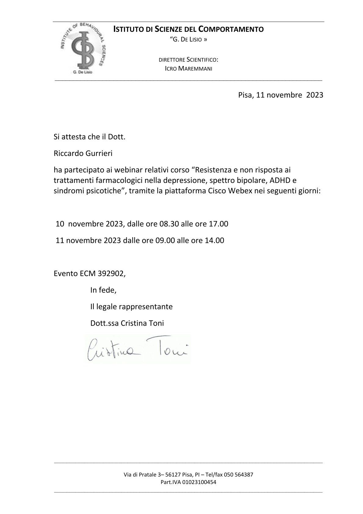 Sono specializzando in Psicoterapia Cognitivo-Comportamentale presso l’Istituto Miller di Firenze e dottorando in Medicina Traslazionale presso la Scuola Superiore Sant’Anna di Pisa. Svolgo attività di ricerca scientifica con oltre 35 pubblicazioni su riviste nazionali e internazionali, dedicate al rapporto tra nutrizione e psicopatologia, alla neurobiologia del disturbo ossessivo-compulsivo, dei disturbi dell’umore, dei disturbi d’ansia e all’insonnia.