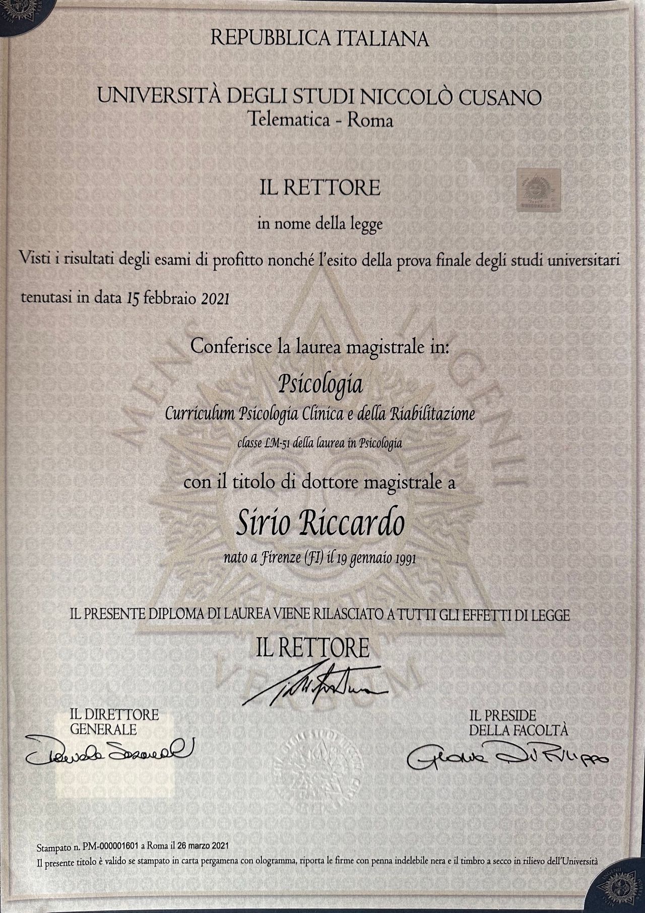 Studio Dott. Riccardo Sirio • colloquio psicologico clinico