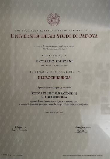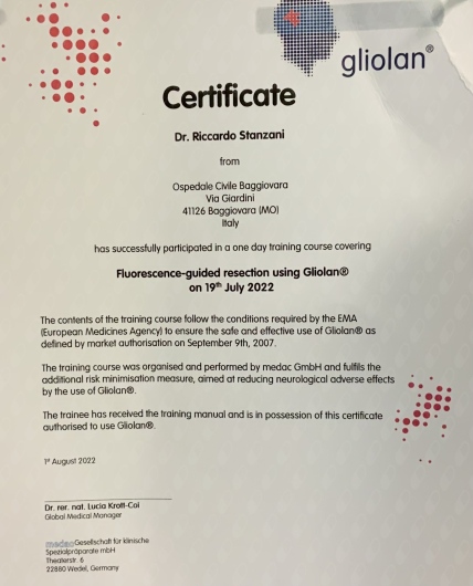 Mi occupo prevalentemente di tumori cerebrali e spinali, malformazioni vascolari e chirurgia vertebrale. Ho l’abilitazione per l’utilizzo del Gliolan intraoperatorio, farmaco fluorescente che viene utilizzato nell’asportazione dei gliomi di alto grado (prima diagnosi e recidiva).