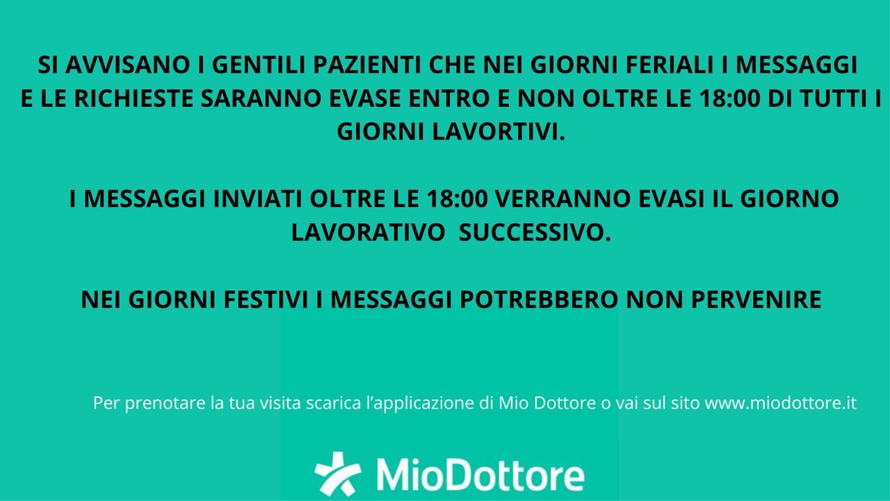 VI RICORDO CHE PER LE RICHIESTE EFFETTUATE TRAMITE L'APP MIODOTTORE CONTROLLATE SEMPRE ANCHE NELLA CARTELLA SPAM
