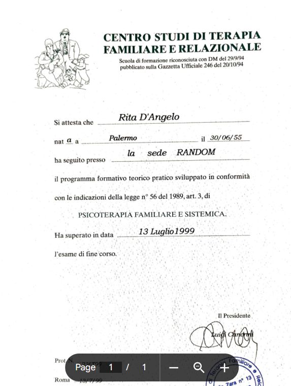 Sono la Dott.ssa Rita D'angelo psicologo e Psicoterapeuta Sistemico Relazionale e Familiare