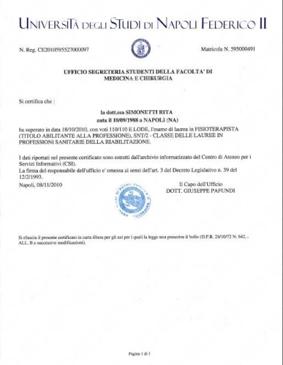 Professionista attenta e scrupolosa sempre aggiornata e interessata al singolo paziente.