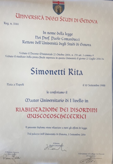 Professionista specializzata in Riabilitazione dei Disordini Muscoloscheletrici