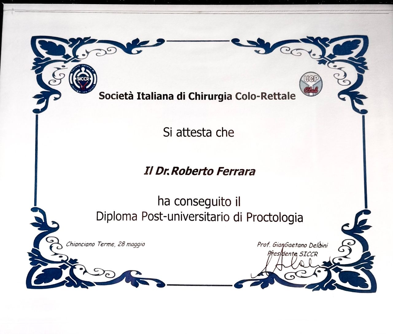 Sono stato operato d urgenza per una fistola anale molto importante e si può dire che il dottor Ferrara mi ha salvato la vita dopo vari insuccessi della medicina pubblica. Grazie ancora dottore per la sua infinita professionalità ed empatia nei confronti dei suoi pazienti.