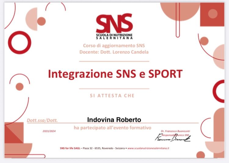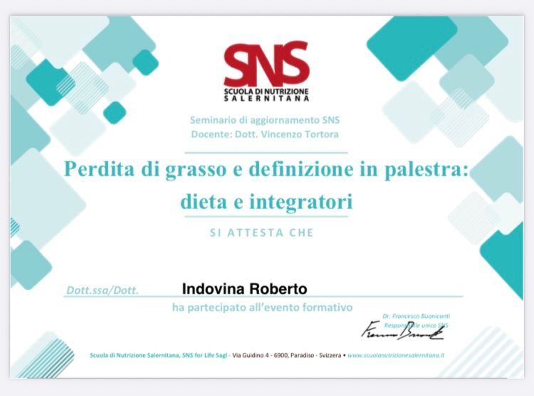 Continuo ad aggiornarmi costantemente partecipando a corsi di alta formazione in ambito nutrizionale e sportivo, consapevole che solo uno sguardo aggiornato e multidisciplinare può offrire risposte efficaci e personalizzate.
