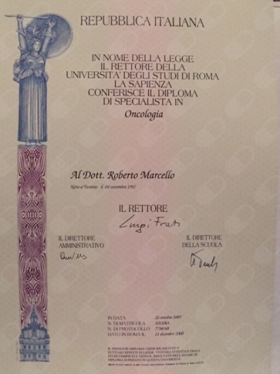 Sono specialista anche in Oncologia Medica e mi occupo in particolare di terapie miniinvasive di malattie oncologiche come la Chemioembolizzazione Epatica di metastasi e tumori primitivi del fegato, Termoablazioni e Crioablazioni di tumori benigni e maligni, Cementoplastiche ossee, Vertebroplastica e Cifoplastica, Embolizzazione dei Fibromi Uterini che evita l'asportazione dell'utero e migliora la fertilità, Embolizzazione Prostatica nella Ipertrofia benigna che evita la resezione chirurgica endoscopica con le sue importanti sequele sulla sfera sessuale.