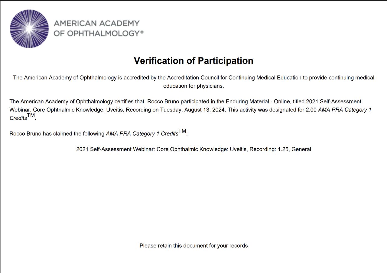 Durante la specializzazione ho trascorso circa 13 mesi presso l’unità di Immunologia Oculare dell’IRCCS Arcispedale Santa Maria Nuova di Reggio Emilia, dove ho approfondito la diagnosi e la gestione delle principali patologie infiammatorie degli occhi.