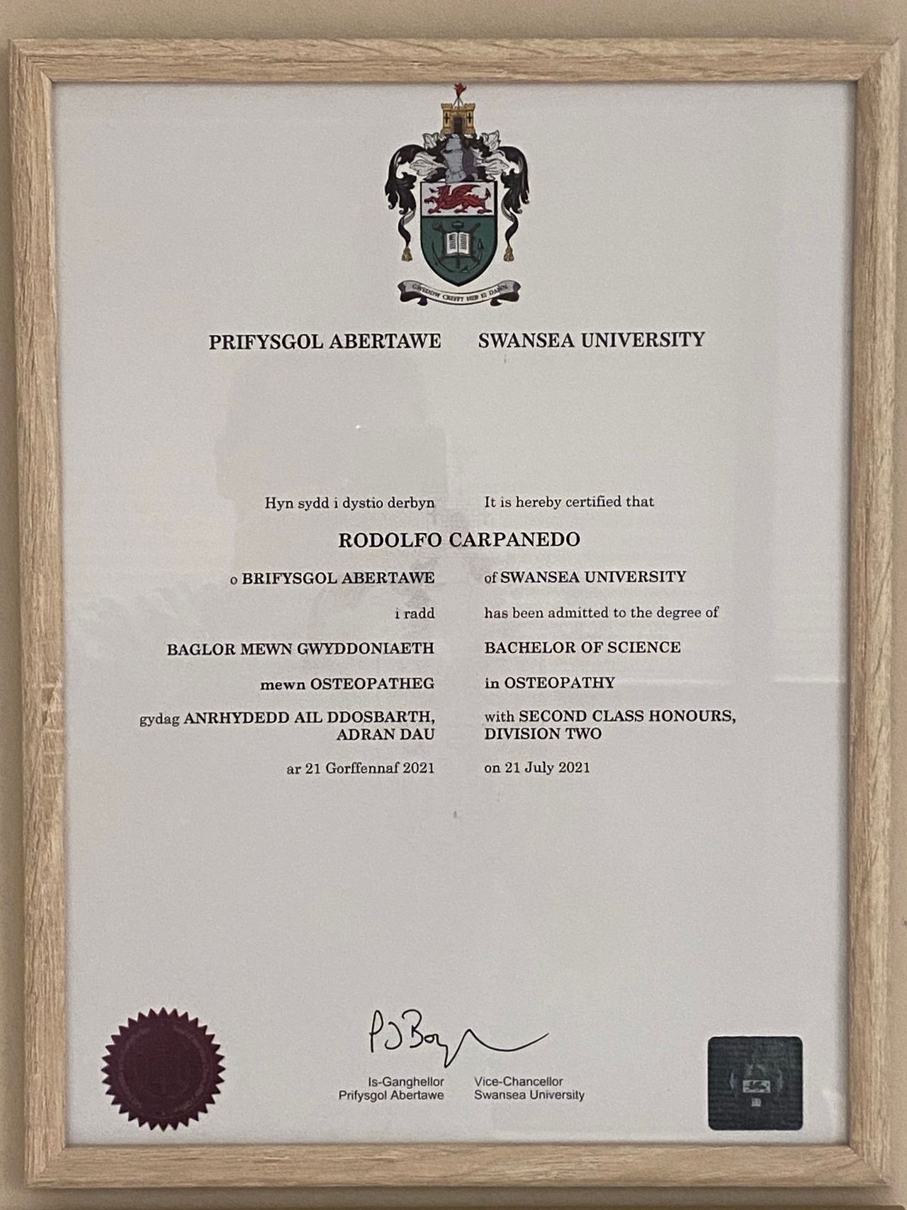 Sono nel settore da 28 anni. Mi sono formato in Italia con un percorso accademico di 5 anni in Scienze Motorie e 6 anni di Osteopatia e ho proseguito gli studi all’estero, conseguendo il Bachelor of Science with Honours in Osteopathy presso la Swansea University (UK), un Master in Osteopatia Pediatrica e Neonatale e la specializzazione in Osteopatia Viscerale con la scuola francese di Roland Solère.