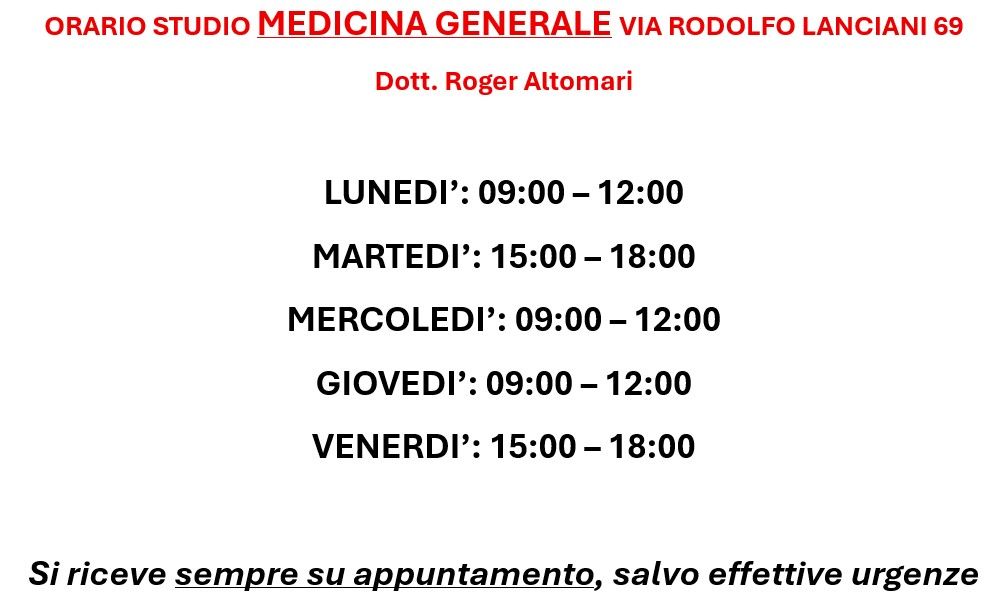 Orario studio di MEDICINA GENERALE