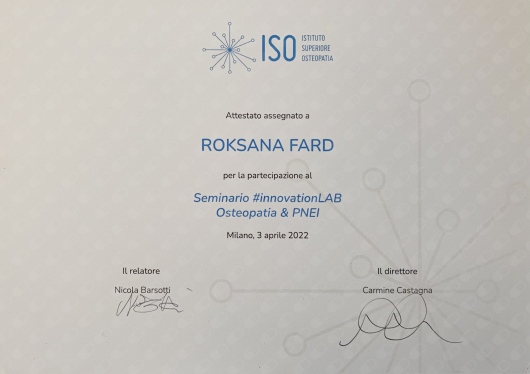 Ricopro il ruolo di assistente alla docenza nel dipartimento di Osteopatia Strutturale presso l’Istituto Superiore di Osteopatia.