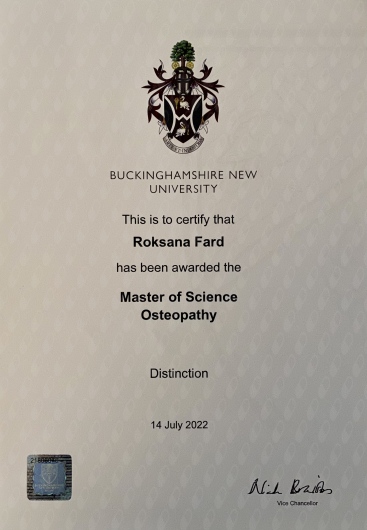 Mi sono laureata in Osteopatia presso l’Istituto Superiore di Osteopatia di Milano e ho conseguito il Master of Science in Osteopathy presso la Buckinghamshire New University di Londra.
