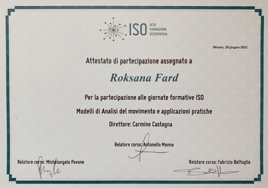Durante la mia formazione accademica ho svolto 3 anni di tirocinio clinico presso il Centro di Medicina Osteopatica di Milano.