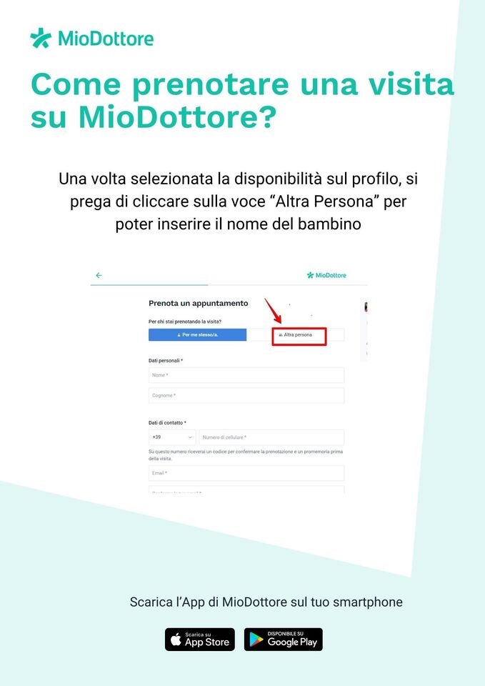 Potete prenotare la visita su MioDottore con IL NOME DEL BAMBINO E NON QUELLO DEI GENITORI seguendo le istruzioni nell' immagine