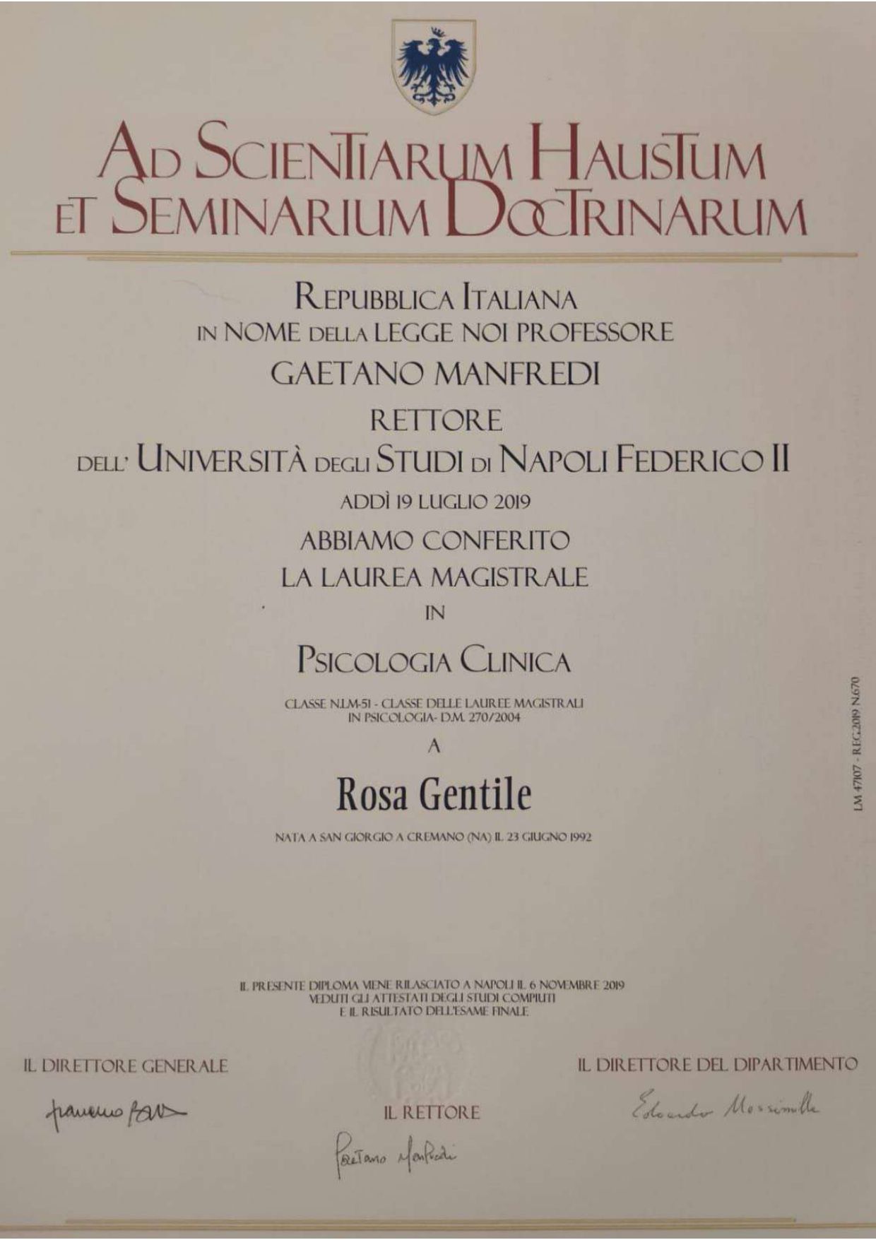 Ho avuto il piacere di fare delle sedute online con la dottoressa Gentile e sono rimasta molto colpita dalla sua professionalità e dalla sua empatia. È riuscita a mettermi a mio agio fin da subito, ascoltandomi con attenzione e offrendomi consigli davvero preziosi. Ogni incontro mi è stato molto utile e mi ha permesso di affrontare alcune difficoltà che stavo vivendo con più forza, consapevolezza e serenità. La consiglio vivamente a chi cerca un supporto psicologico competente e allo stesso tempo comprensivo.