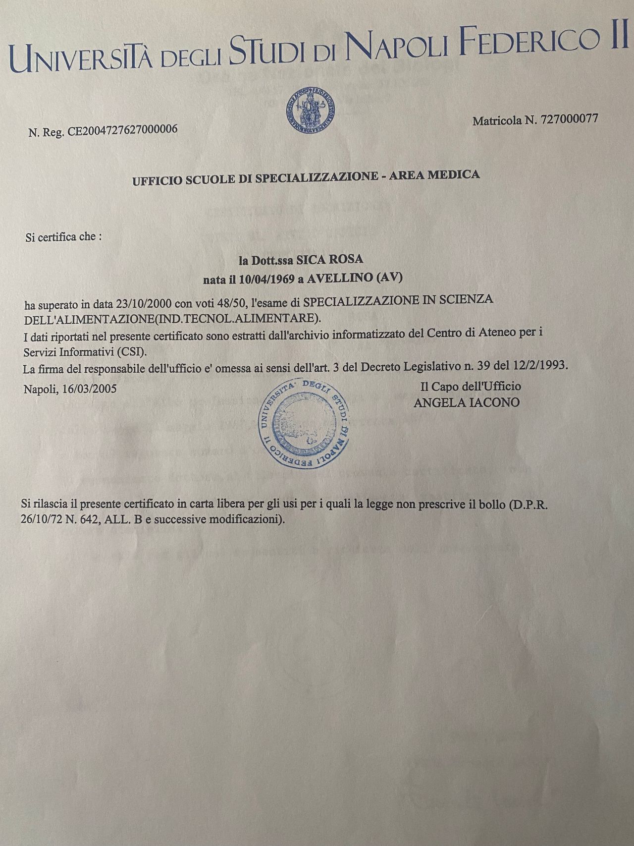 Dott.ssa Rosa Sica