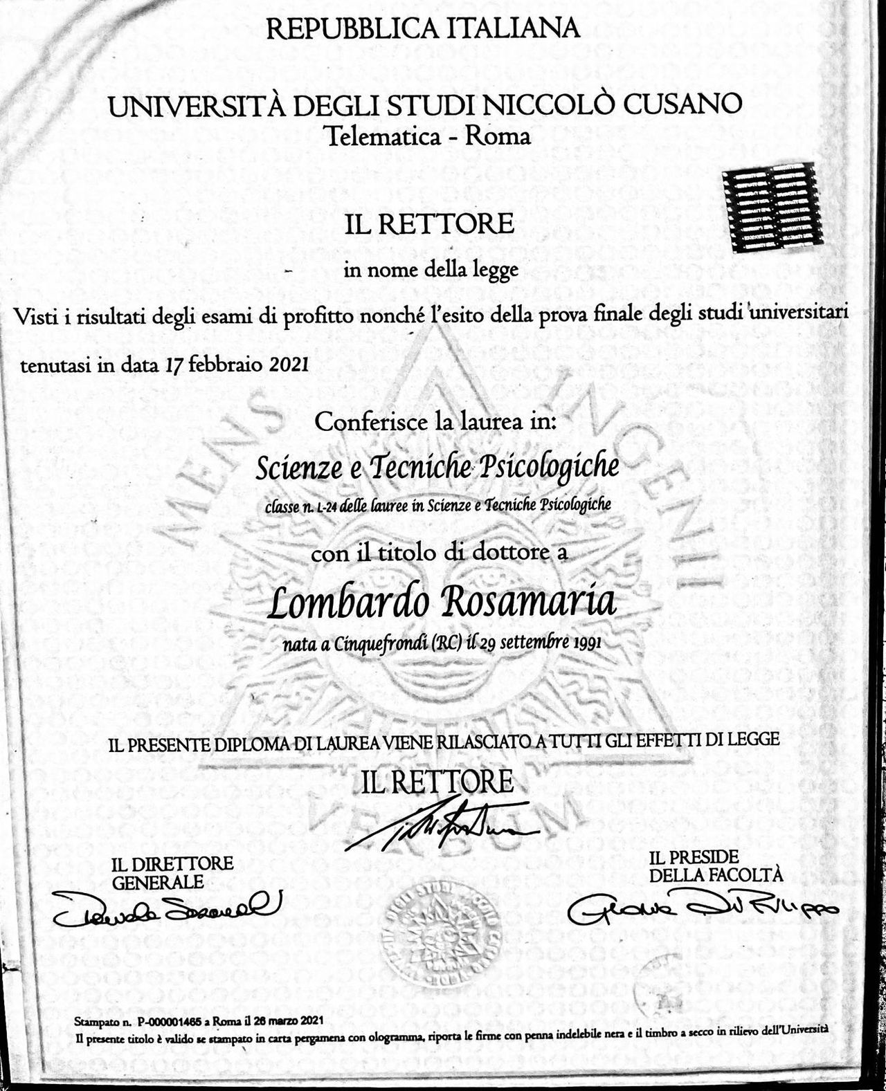 Ho avuto modo di ricevere consulenza online dalla Dottoressa Rosamaria Lombardo su tematiche scientifiche, psicologiche ed educative. È una professionista a dir poco eccellente! Sempre preparata, chiara nelle spiegazioni e capace di coniugare rigore scientifico e sensibilità umana. Ho apprezzato molto la sua capacità di rendere comprensibili concetti complessi, senza perdere mai di vista l'aspetto pratico ed educativo. Un supporto prezioso, che consiglio a chiunque cerchi una guida competente e attenta.