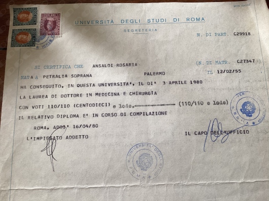 Nel 1984 sono tornata a Palermo e da allora al1990 ho frequentato da medico volontario il reparto di ostetricia e ginecologia dell’ ospedale Villa Sofia di palermo, dove la mia attivita’ predominante e’ stata l’ assistenza ai parti e alle interruzioni volontarie delle gravidanze. Contestialmente nel 1988 ho conseguito la specializzazionein ostetricia e ginecologia presso la scuola di Palermo. A partire dal 1990 e fino al 2023 ho lavorato come ginecologa presso l’ ASP6 di palermo, come medico dei consultori,occupandomi di prevenzione,contraccezione,diagnosi delle malattie sessualmente trasmesse, hpv, Chlamydia, patologie infettive e diagnosi ecografiche e colposcopiche. Inoltre mi sono occupata a lungo del management delle gravidanze e delle richiestediinterruzione di gravidanza. Dal 2023 sono andata in pensione e vorrei continuare a mettere a disposizione delle pazienti quanto appreso, scoperto, elaborato, ricercato e amato in tanti anni di attivita’.
