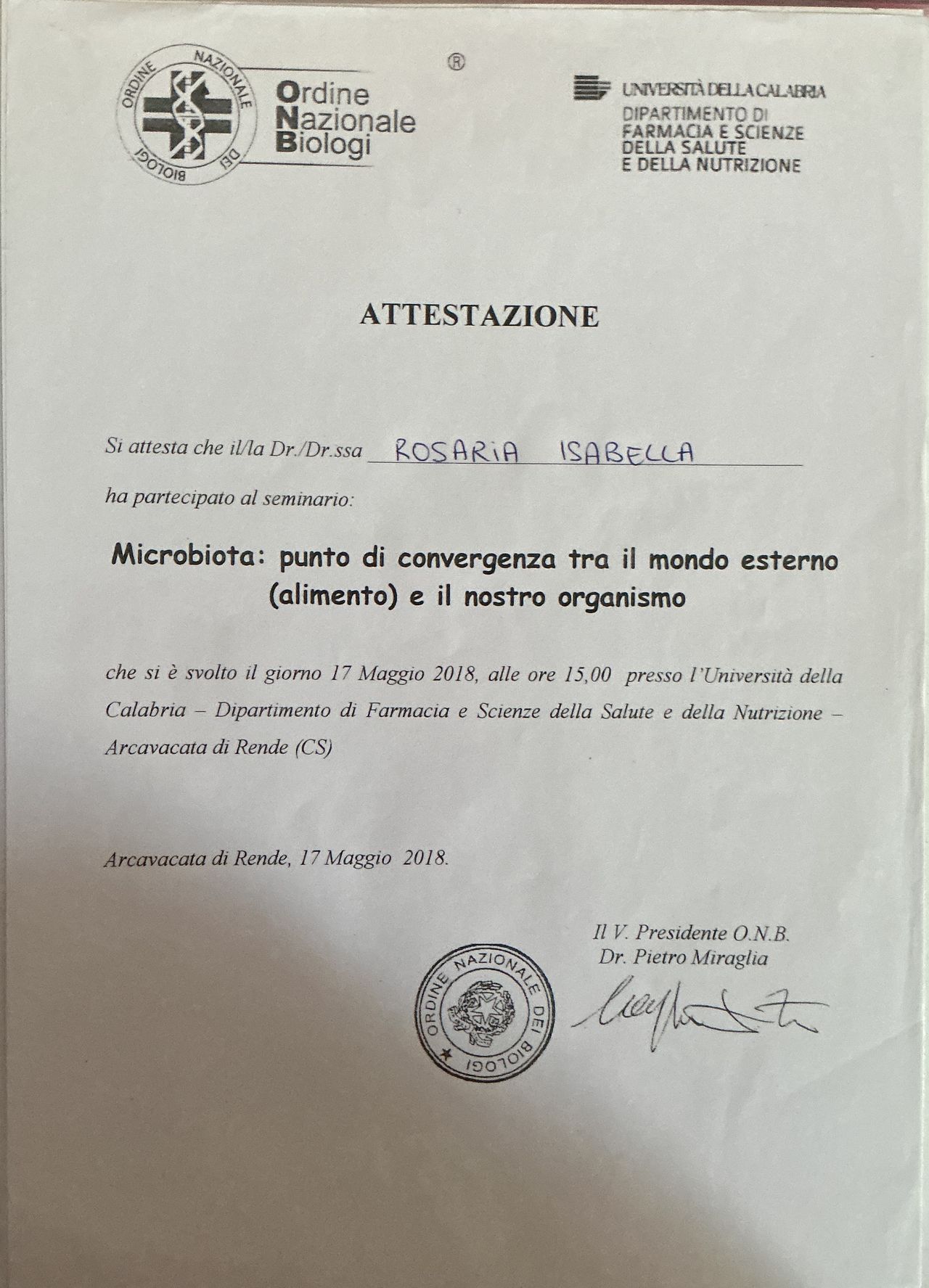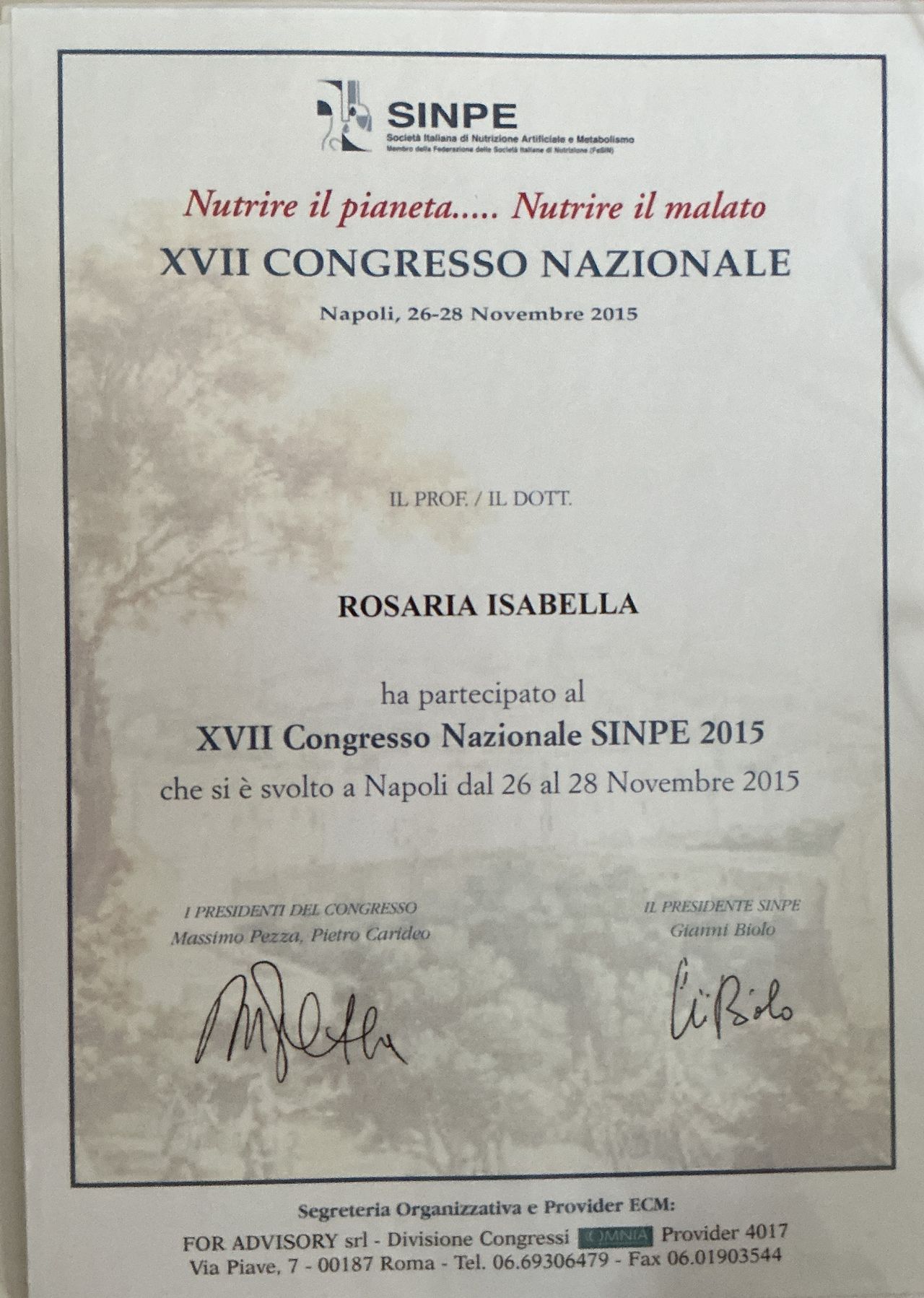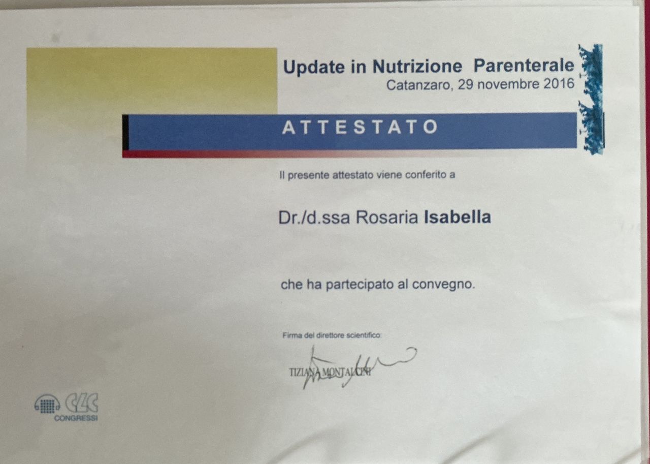 Ho rafforzato le mie competenze con il Diploma di Specializzazione in Scienza dell'Alimentazione, titolo che attesta un'alta formazione clinica e specialistica. Questa expertise mi ha fornito una profonda competenza nella Nutrizione Clinica, gestendo con successo casistiche complesse e percorsi nutrizionali in supporto a patologie e condizioni mediche specifiche.