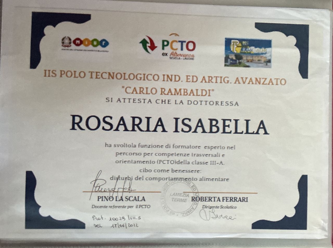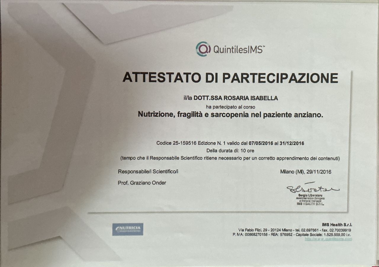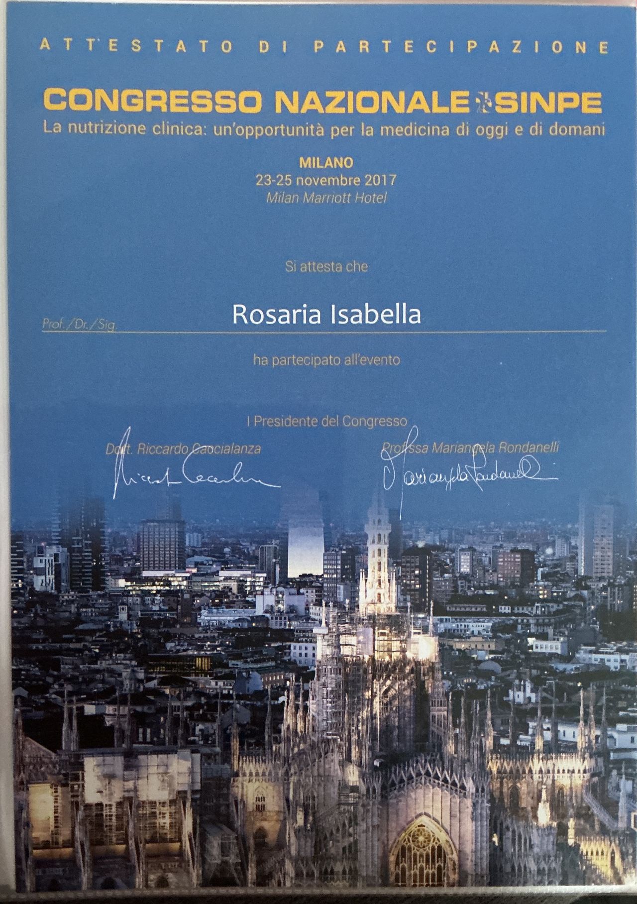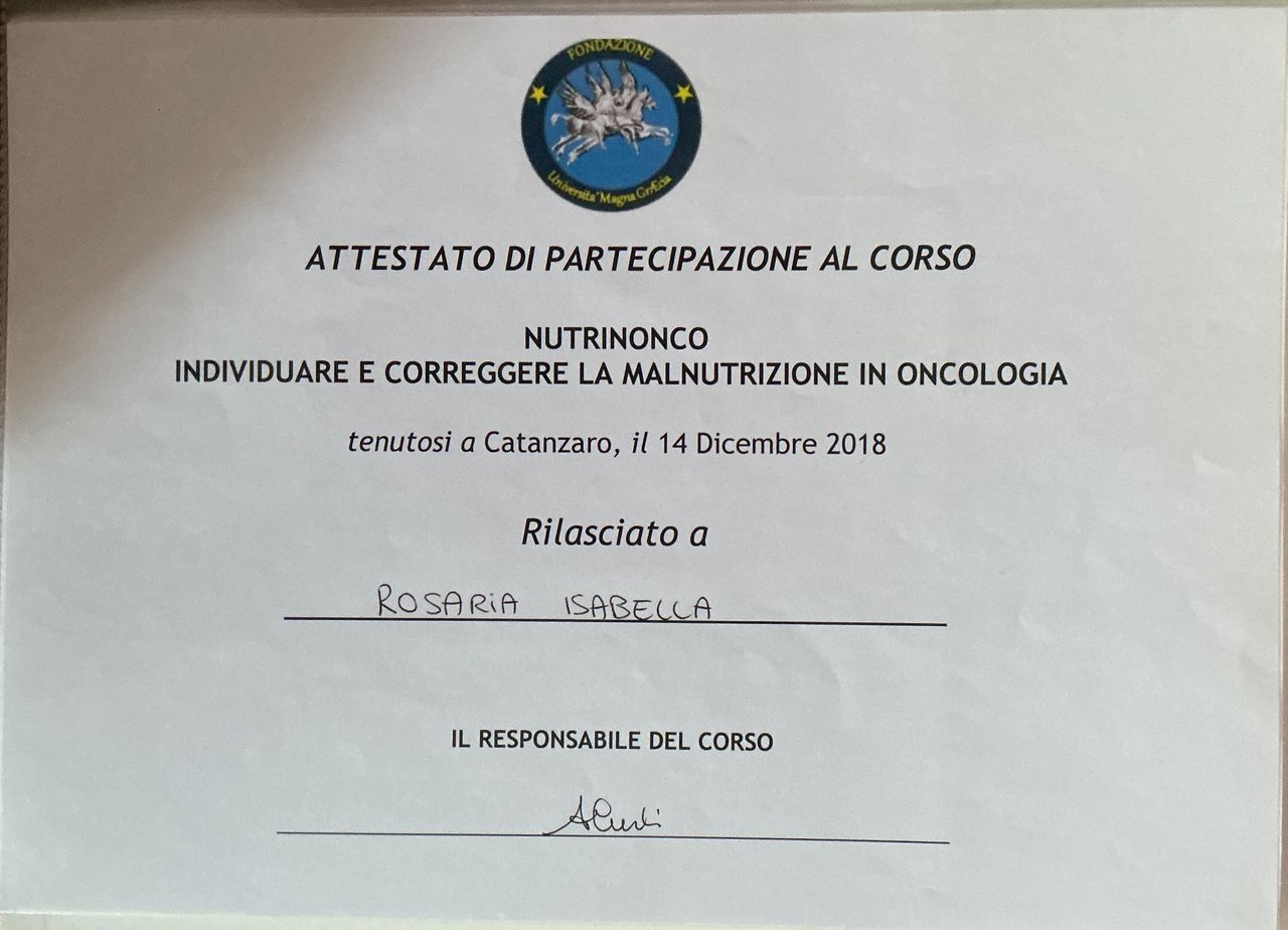 Ho rafforzato le mie competenze con il Diploma di Specializzazione in Scienza dell'Alimentazione, titolo che attesta un'alta formazione clinica e specialistica. Questa expertise mi ha fornito una profonda competenza nella Nutrizione Clinica, gestendo con successo casistiche complesse e percorsi nutrizionali in supporto a patologie e condizioni mediche specifiche.