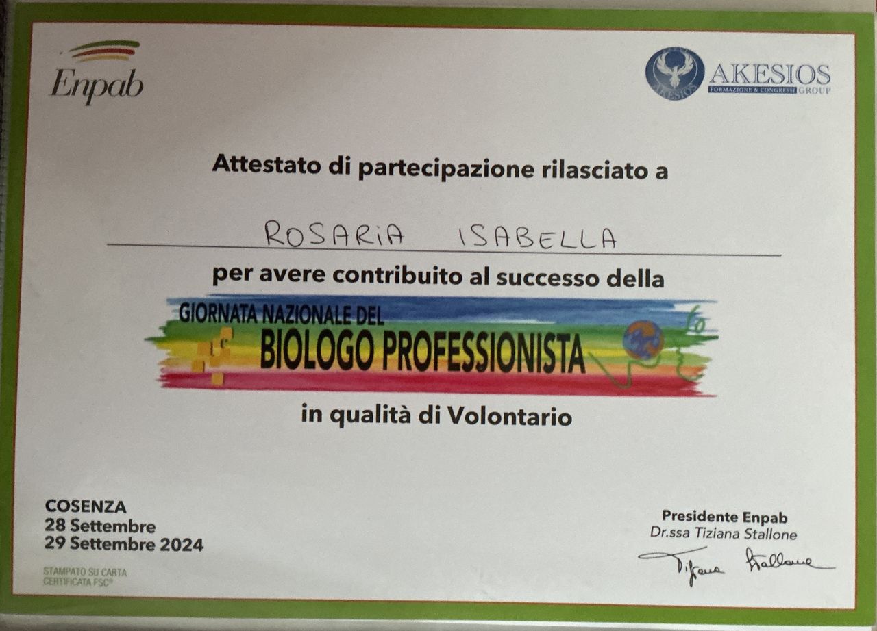 Biologa Nutrizionista, Specialista in Scienza dell'Alimentazione