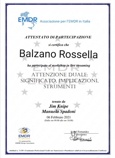 Eseguo anche terapie brevi tramite l’utilizzo dell’EMDR (Desensibilizzazione e rielaborazione attraverso i movimenti oculari) che è un metodo psicoterapico strutturato che facilita il trattamento di diverse psicopatologie e problemi legati sia ad eventi traumatici, che a esperienze più comuni ma emotivamente stressanti.