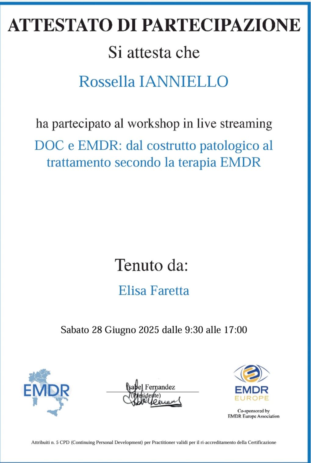 Ho iniziato il percorso con la Dottoressa Ianniello verso fine 2024. Fin da subito, dandomi utili consigli e accorgimenti è riuscita a farmi intravedere la luce che sembrava smarrita. Il percorso è ancora in atto e sicuramente oltre alla bravura della sua figura serve sempre il massimo impegno personale nel seguire ciò che dice. Si è dimostrata subito molto empatica ed attenta , con grande professionalità mi sta dando un grosso aiuto. riesce a mettere il paziente sempre a proprio agio.
