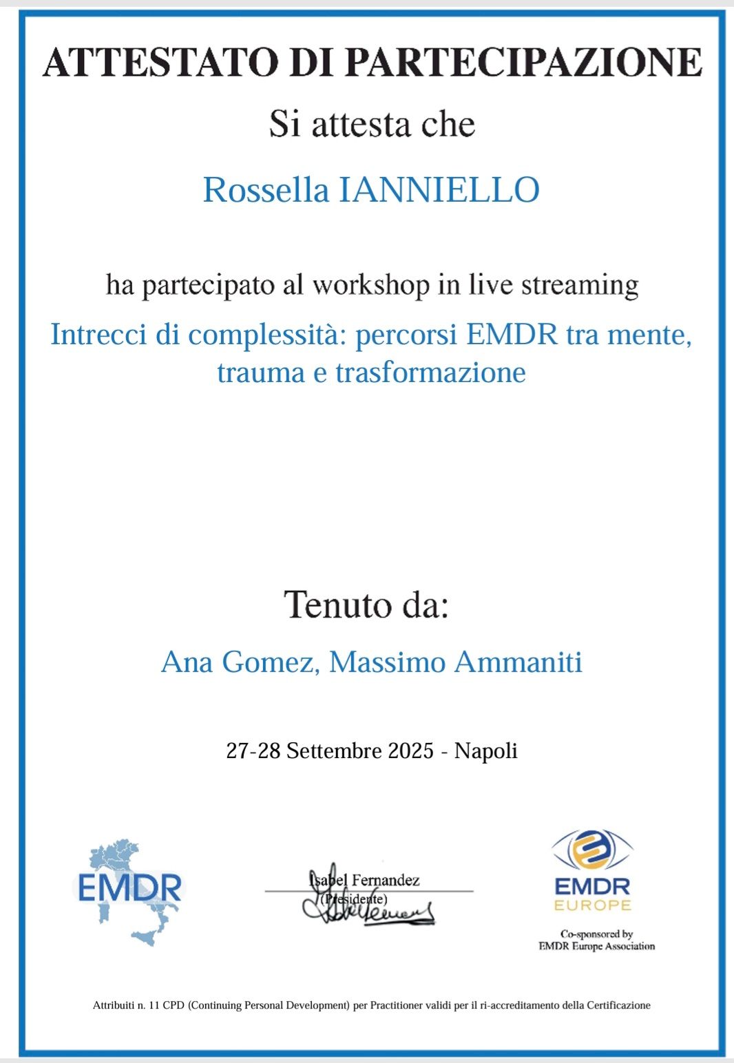 Per maggior informazioni è possibile visitare il mio sito www.rossellaianniello.it.
