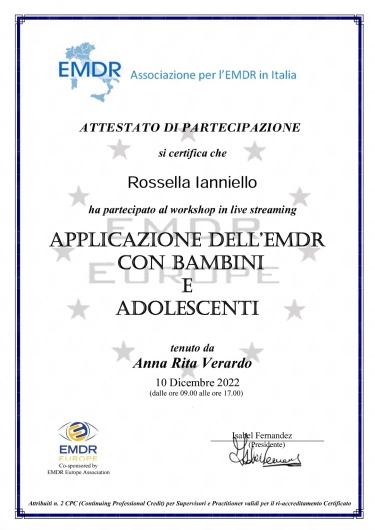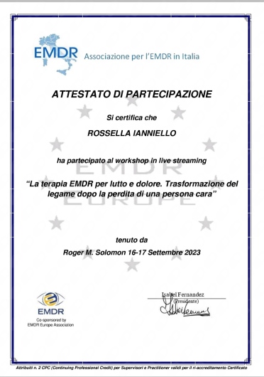 Sono inoltre formata sulla psicoterapia EMDR.