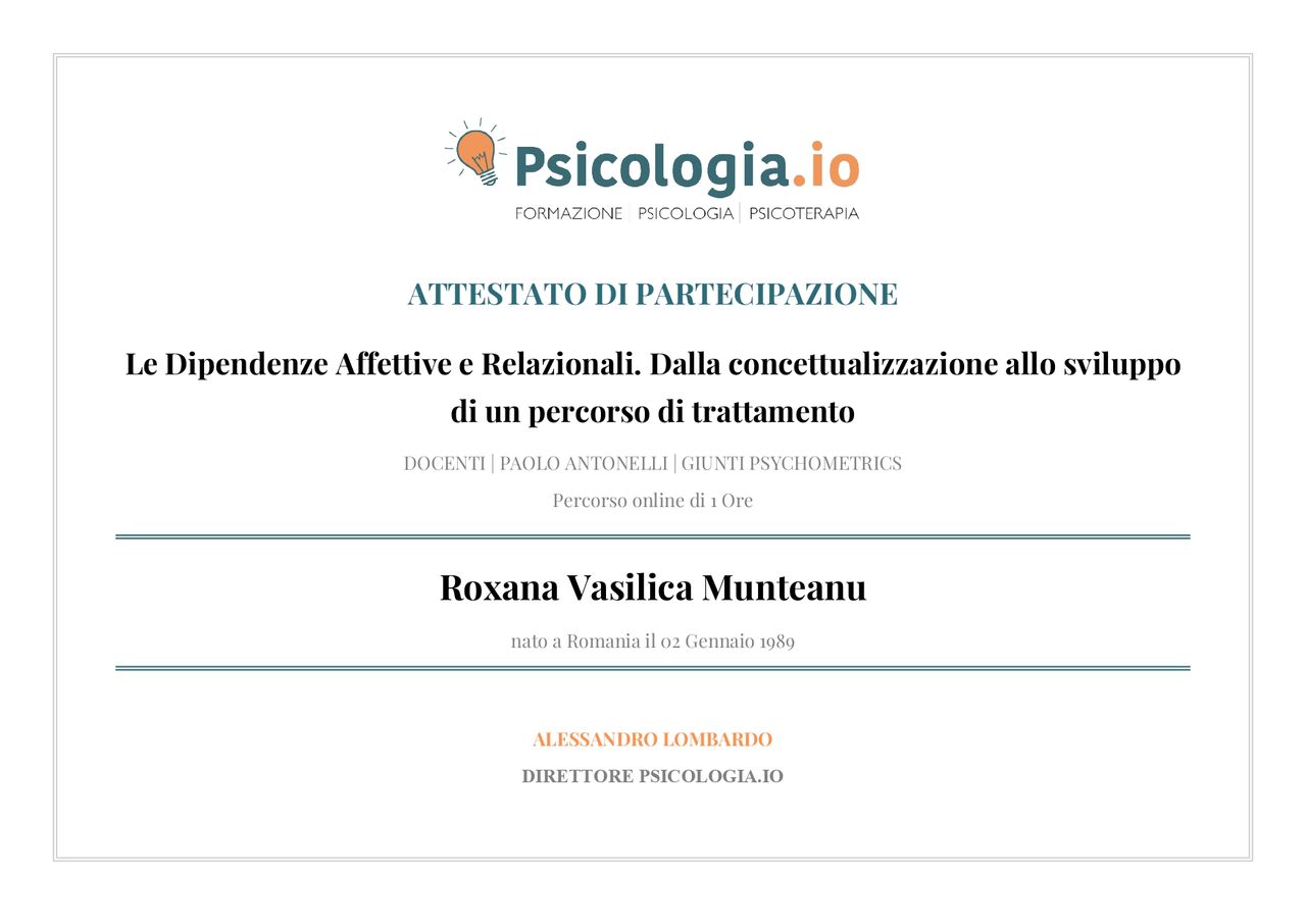 Ho intrapreso un percorso con la Dott.ssa Roxana in un momento in cui il stato di anima mi stava condizionando profondamente la mia vita quotidiana. Mi sentivo senza energie, senza motivazioni e con la sensazione di non riuscire più a gestire le mie emozioni. Fin dal primo incontro ho percepito in lei grande disponibilità, empatia e capacità di creare un clima di fiducia, qualità che mi hanno permesso di aprirmi con sincerità.