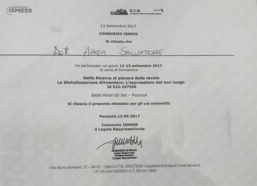 Corso di perfezionamento Università Federico II di Napoli relativo al sistema HACCP, rivolto agli addetti che manipolano generi alimentari.
