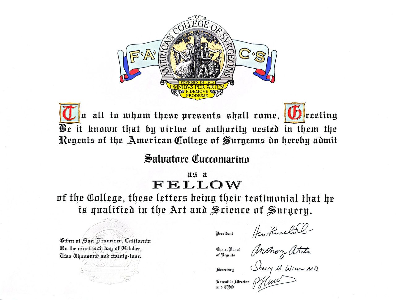 Nel 2012 ho fondato il team chirurgico "Cuccomarino, MD", attivo presso la Clinica Santa Caterina da Siena a Torino ed a Milano presso la Clinica Forma e la Clinica "La Madonnina".