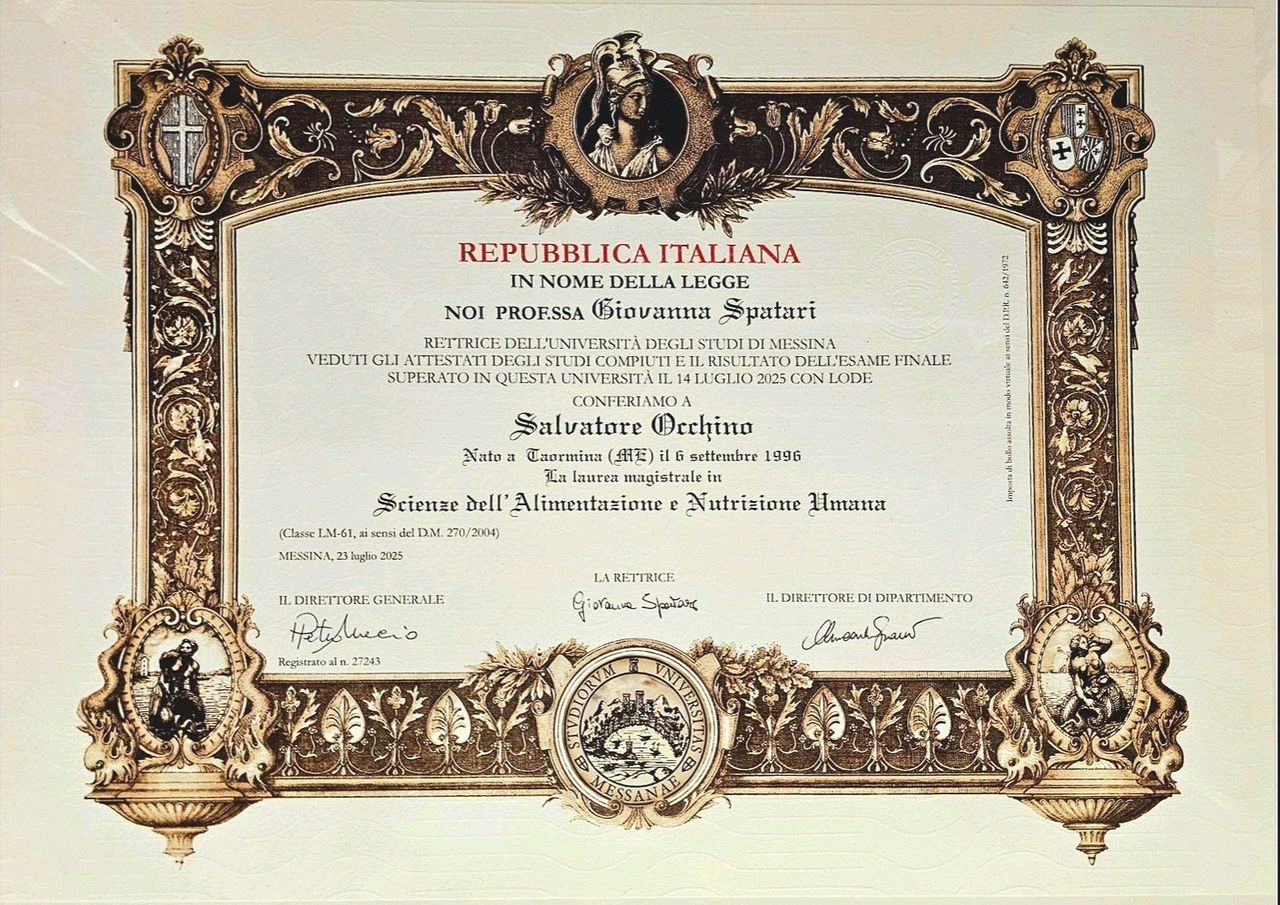 Dopo la laurea triennale in Scienze dell’Alimentazione, ho proseguito con la laurea magistrale in Scienze dell’Alimentazione e Nutrizione Umana, affiancando contemporaneamente un Master di I livello per consolidare e ampliare le mie competenze.