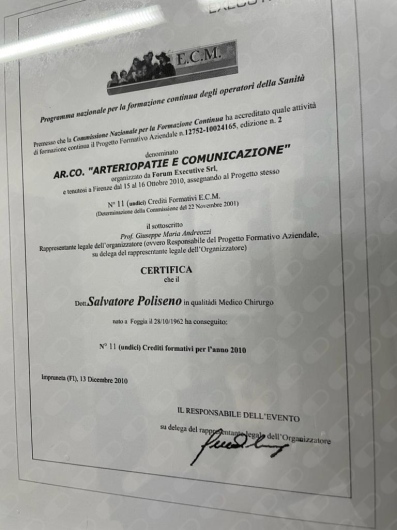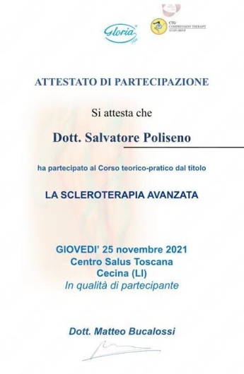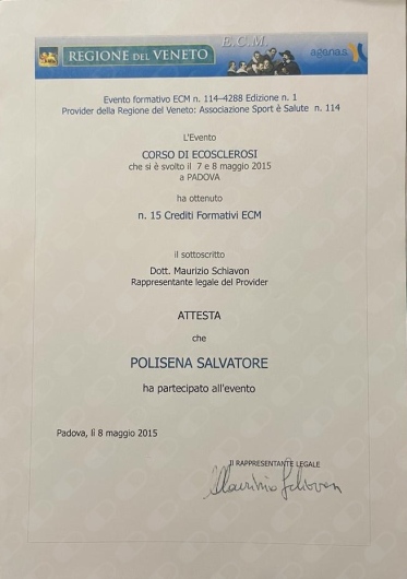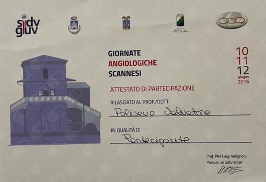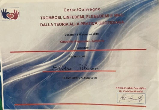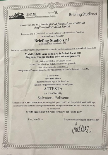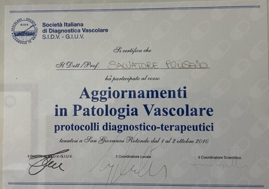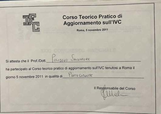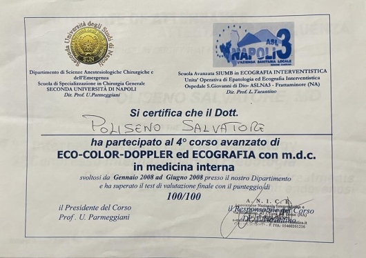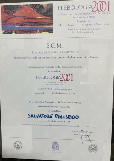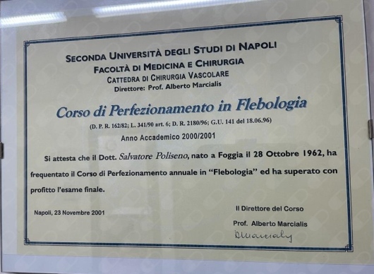 -Perfezionato in Flebologia presso l’Università di Napoli Federico II° nell'anno accademico 2000/2001