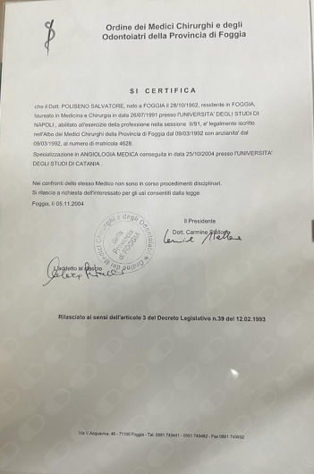 -Specializzato in Angiologia Medica presso l’Università di Catania il 25 ottobre 2004